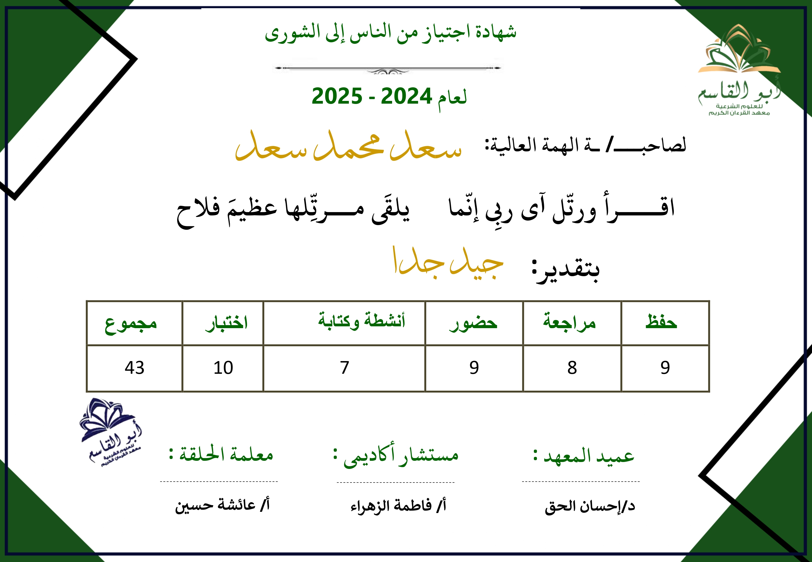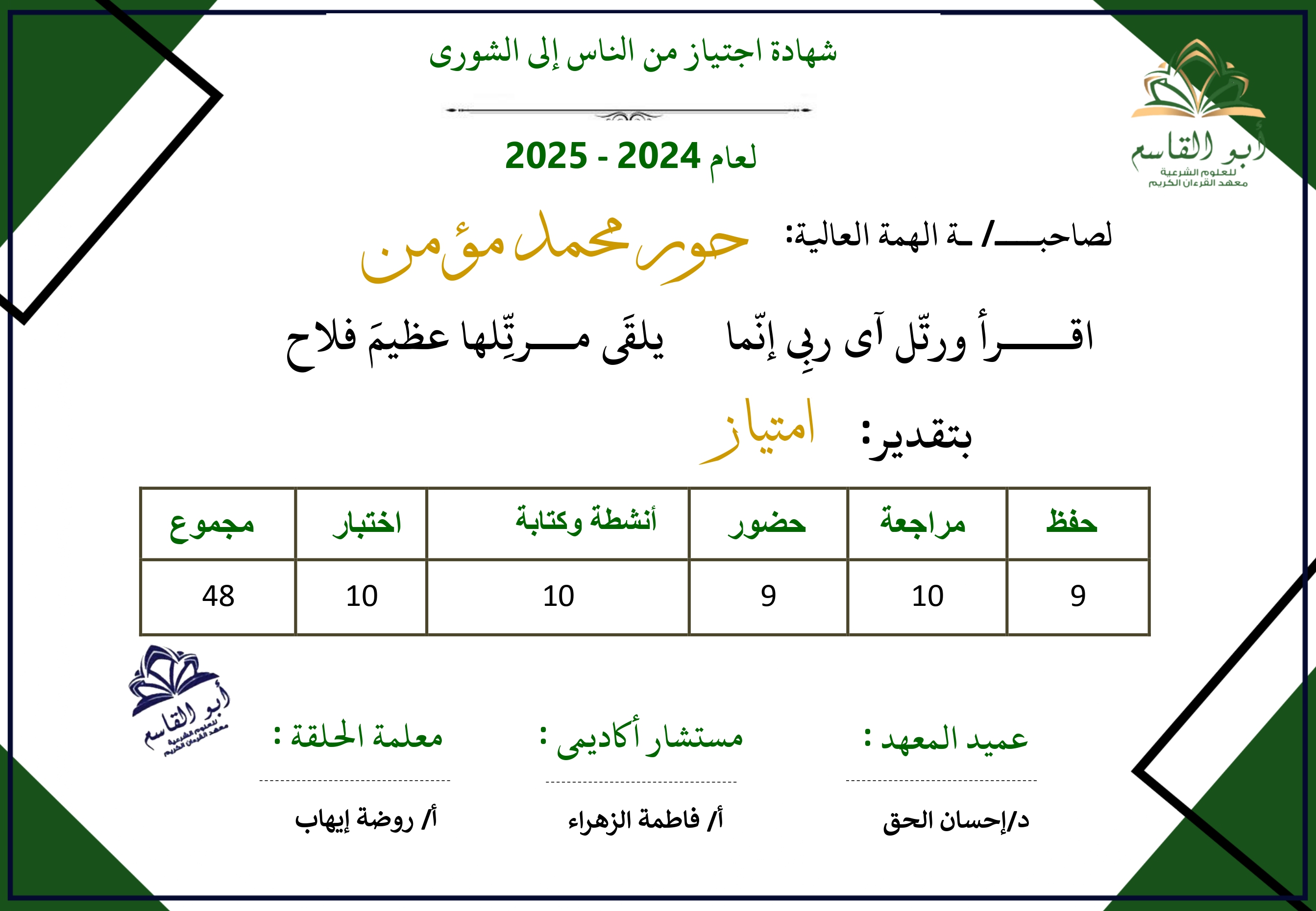 تكريم الإنجاز القرآني – شهادات العام 2025 🏆