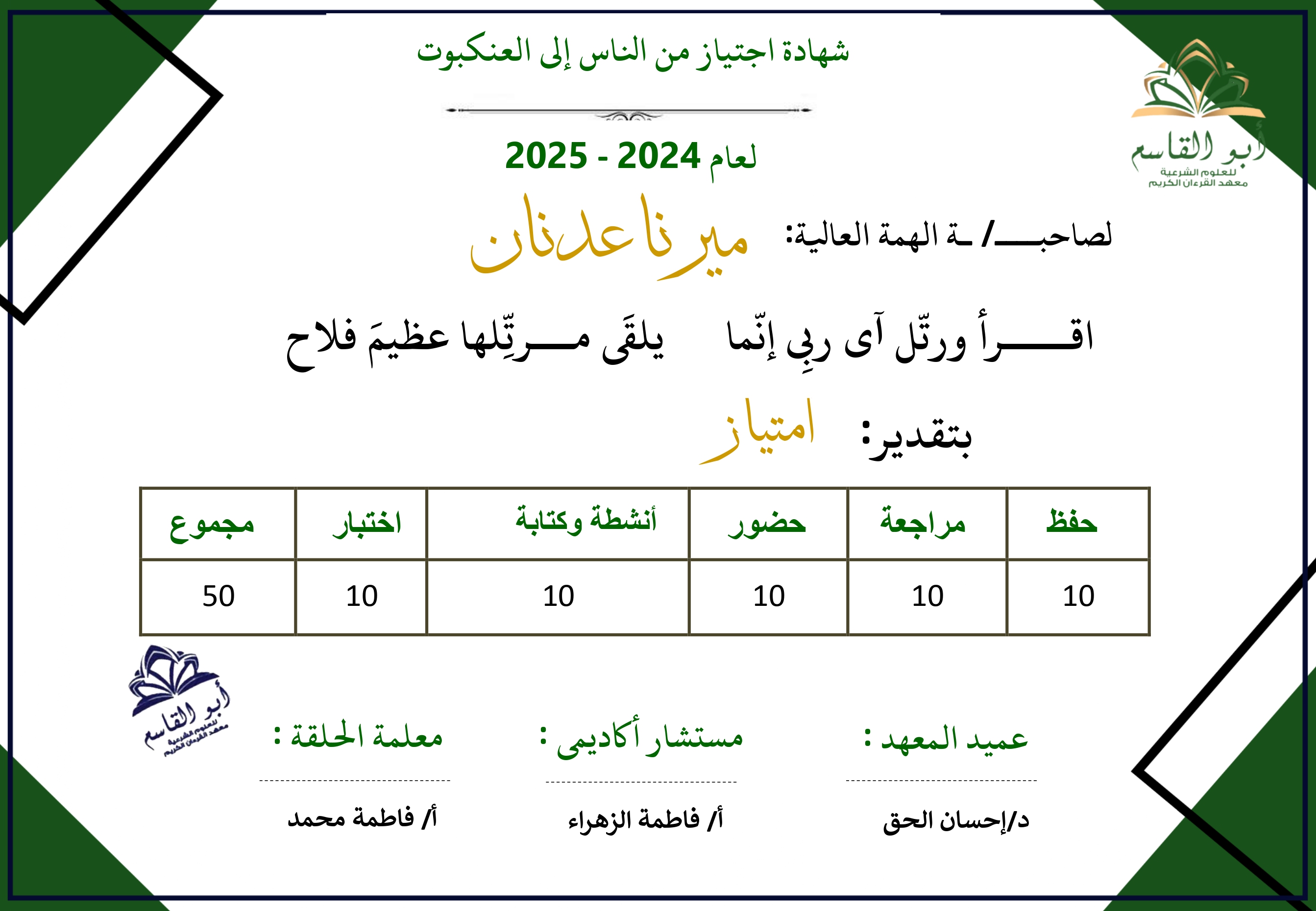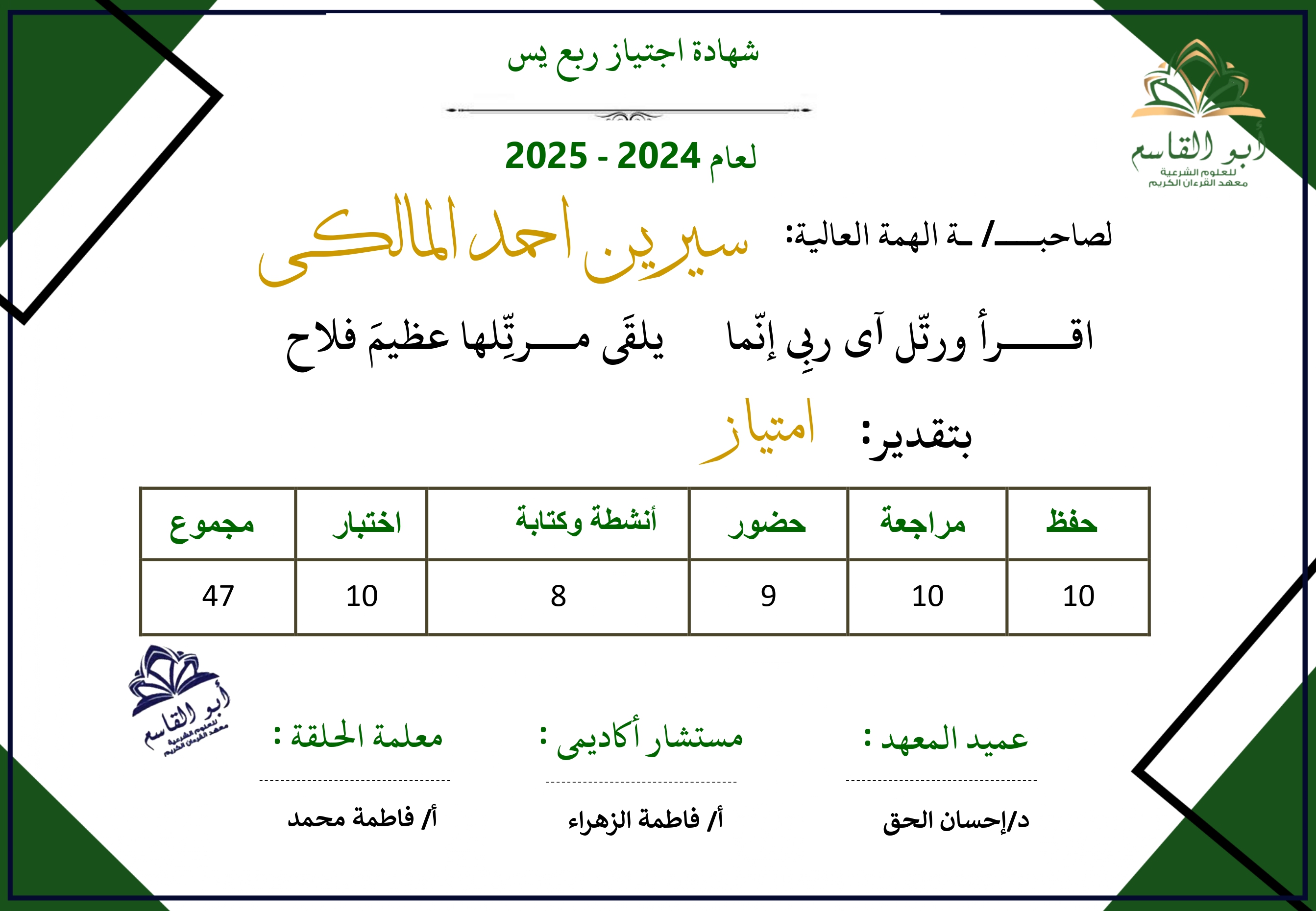 تكريم الإنجاز القرآني – شهادات العام 2025